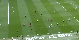 第63分钟,努内斯禁区内放倒埃基蒂克,主裁判罚点球。萨拉赫主罚的点球被特拉福德扑出。