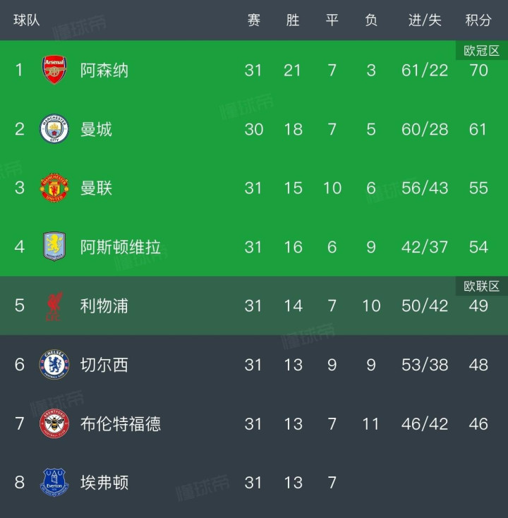 从积分优势来看,曼联目排名第3,虽然只领先第4名维拉队1分,但是领先第5名利物浦6分、第6名切尔西7分,优势非常明显。